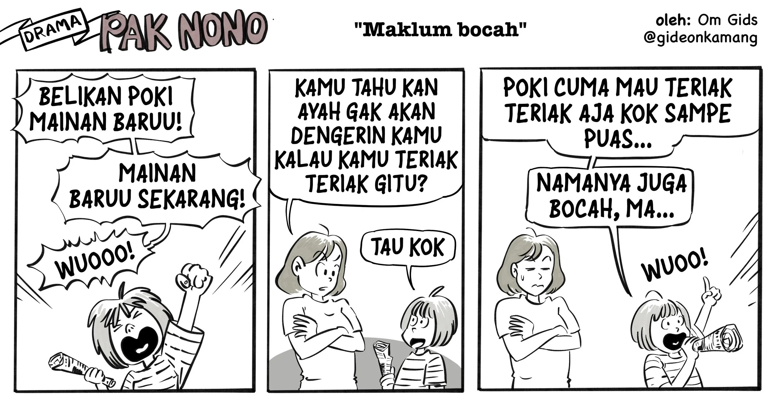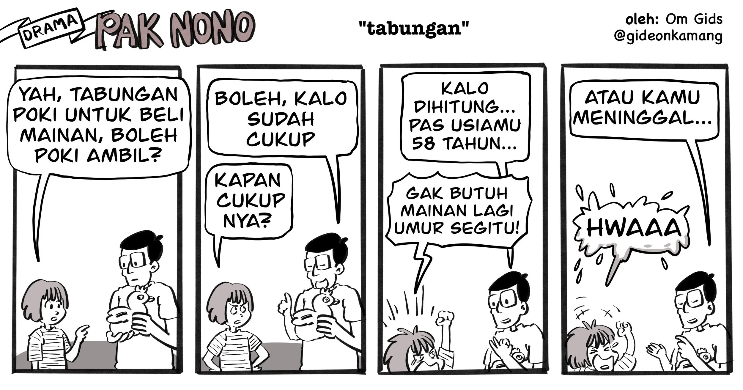 Each day, Pak Nono finds himself caught in hilarious situations caused by Poki's endless curiosity and bold remarks about life, the world, and everything in between. Despite being a good-hearted father, Pak Nono’s tendency to bumble through situations often leaves him struggling to keep up with his clever daughter, while also trying to avoid his wife’s stern scoldings. Though he loves his family dearly, Pak Nono is a bit fearful of his wife’s no-nonsense attitude, adding to the comedic tension.
