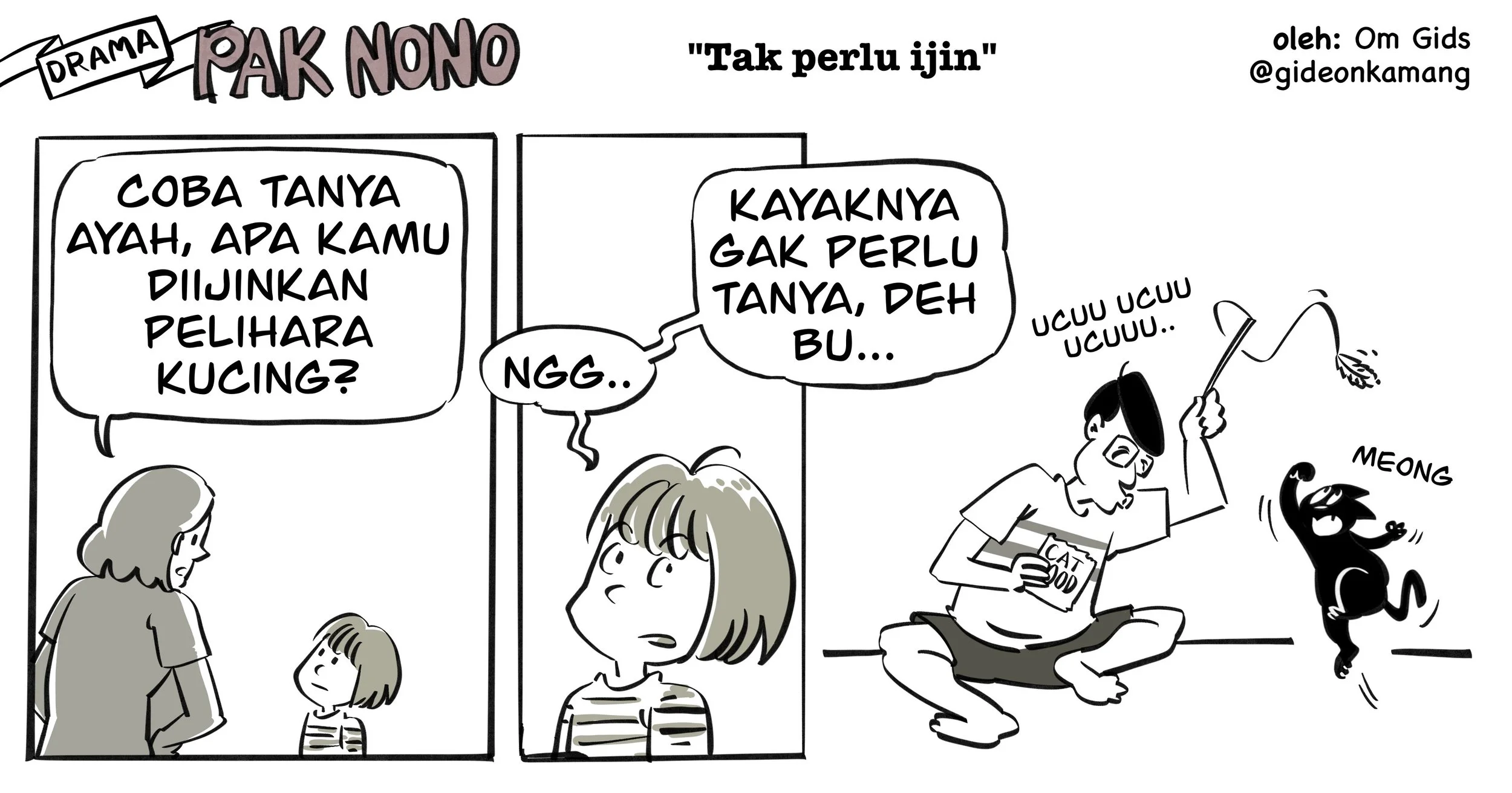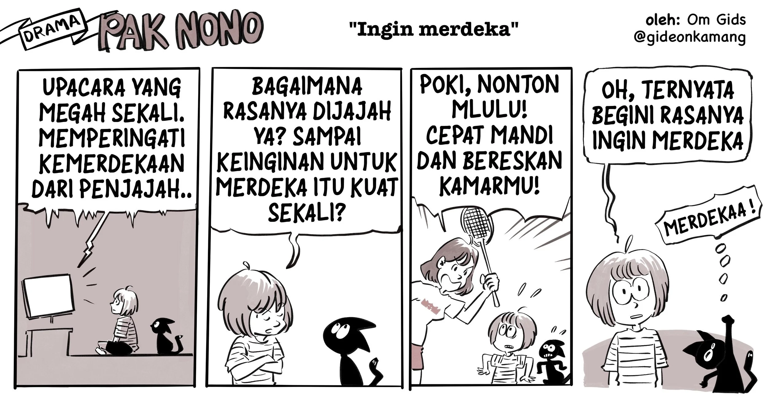"Drama Pak Nono" is a lighthearted and humorous cartoon that follows the everyday adventures of Pak Nono, a well-meaning but slightly clueless man navigating family life with his strong-willed wife, their mischievous and sharp-tongued daughter Poki, and a sarcastic cat who seems to always be watching the chaos unfold.