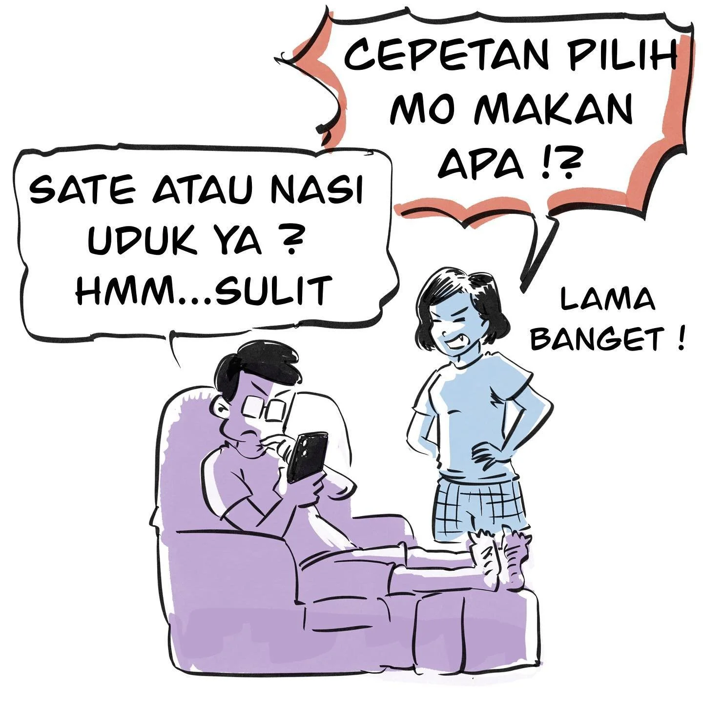Ini termasuk persimpangan hidup yang sulit itu...makan siang sate atau nasi uduk? Atau ricebox yang lagi promo ?