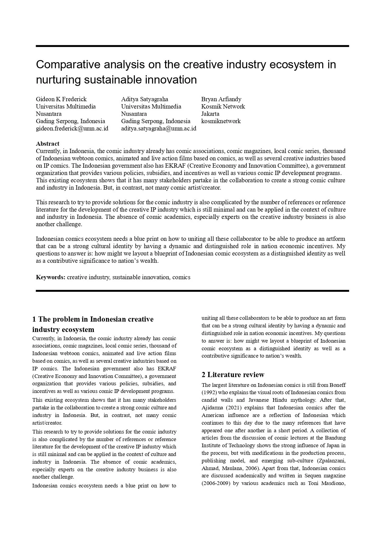 Comparative analysis on the creative industry ecosystem in nurturing sustainable innovation