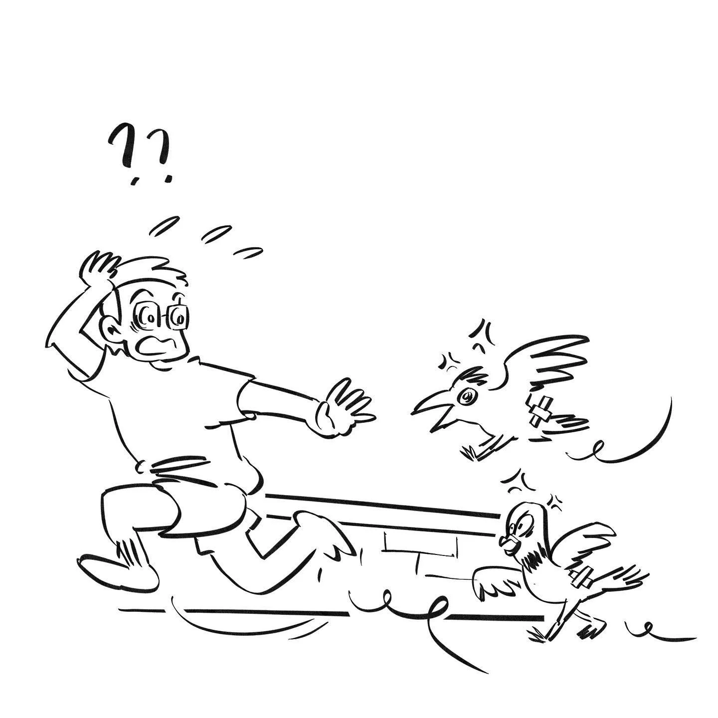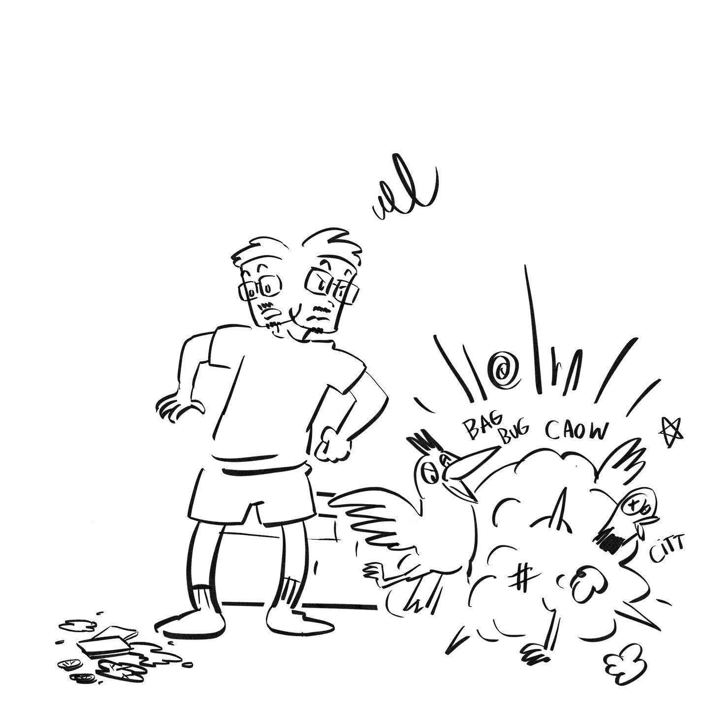 What de fag with the birds here!? Made this cartoon in 20 minutes, just meters from the crime scene. Got to finish quickly before they come back. (burung kampung sini)